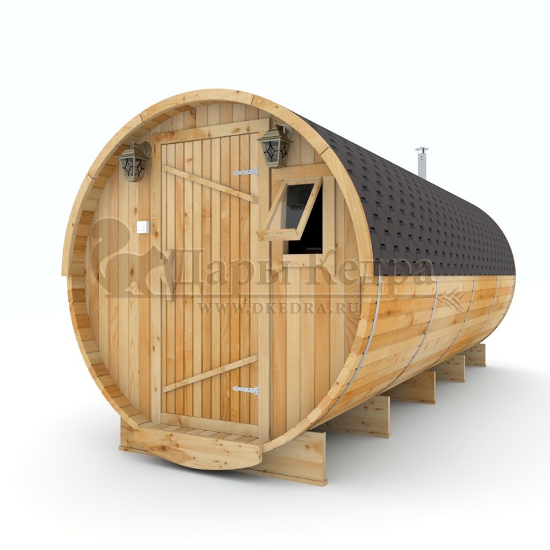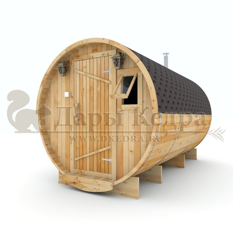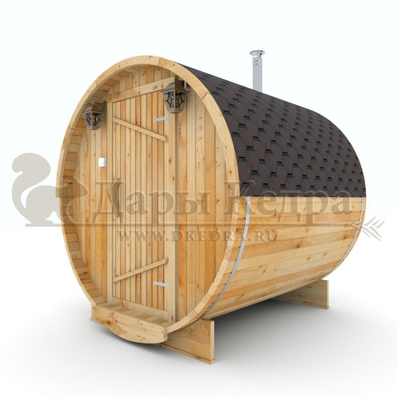 • Баня-бочка круглая из кедра с боковым входом (все размеры) Боковой вход у такой модели находится в начале или в середине конструкции. В увеличенные модели можно повесить полочки и вешалки из кедра. Время растопки такой бани не превышает 30 минут. По вашему желанию баню-бочку можно дополнить печью с внешней загрузкой, благодаря которой весь мусор после топки останется на улице. Круглая баня-бочка не требует полноценный фундамент, поэтому при необходимости ее можно перенести в другое место. Обращаем Ваше внимание, что в стандартную комплектацию бани входят лавки в парной с обеих сторон. Дополнительно можно заказать полок открытого или закрытого типа! Кедр обладает ароматическими свойствами. Он не деформируется и влагоустойчив, при правильном уходе за деревом на нем не развиваются грибки и плесень.