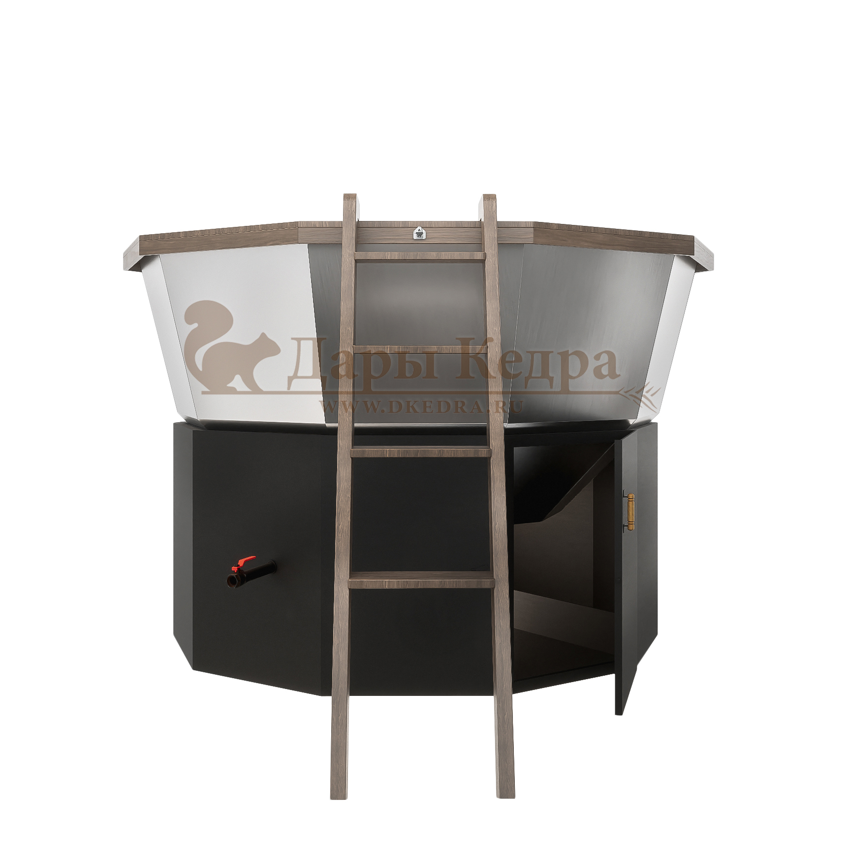 Прочная и удобная лестница из металла с обшивкой из кедра позволит комфортно подниматься и погружаться в воду (5 ступеней и площадка).