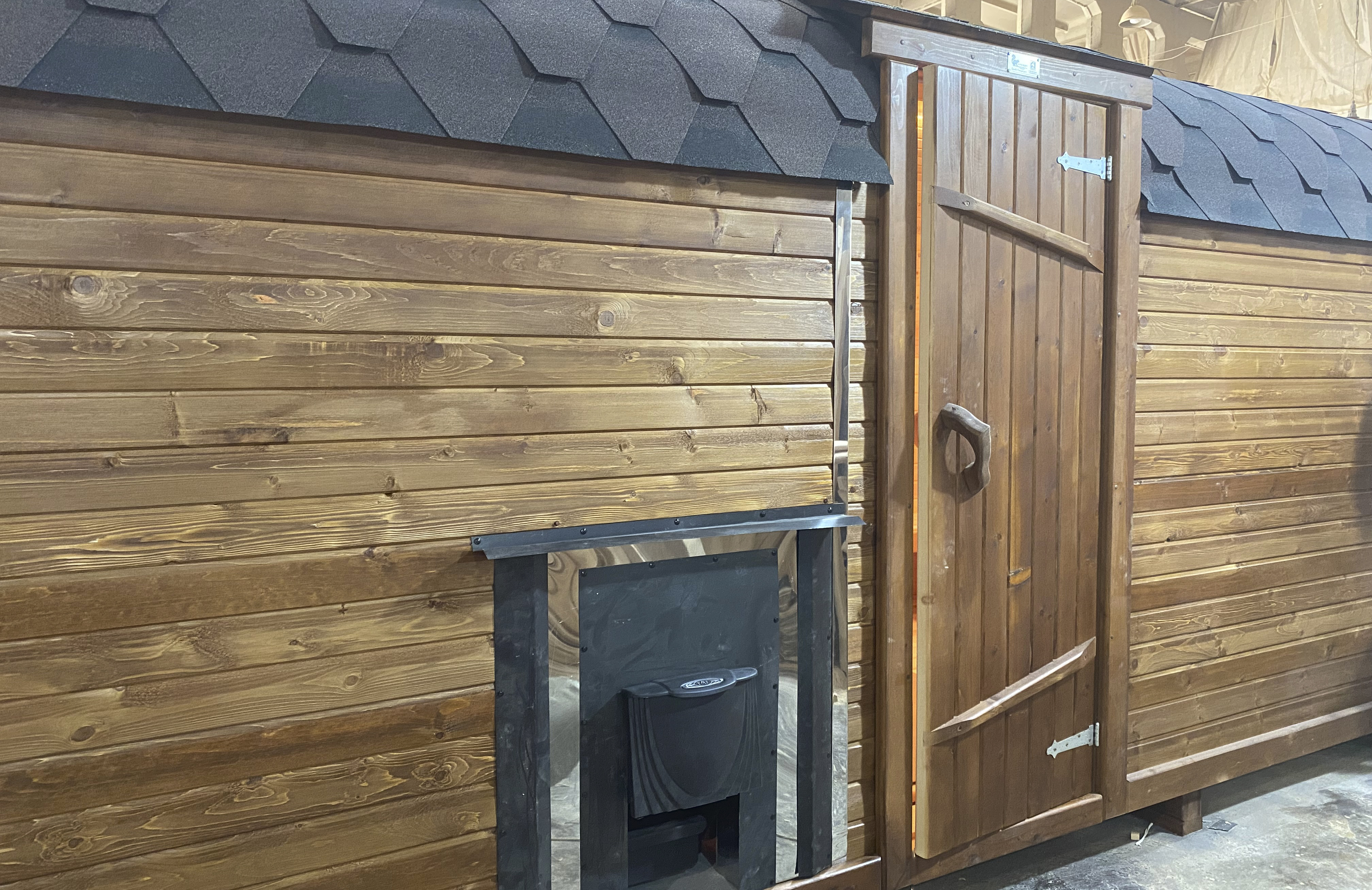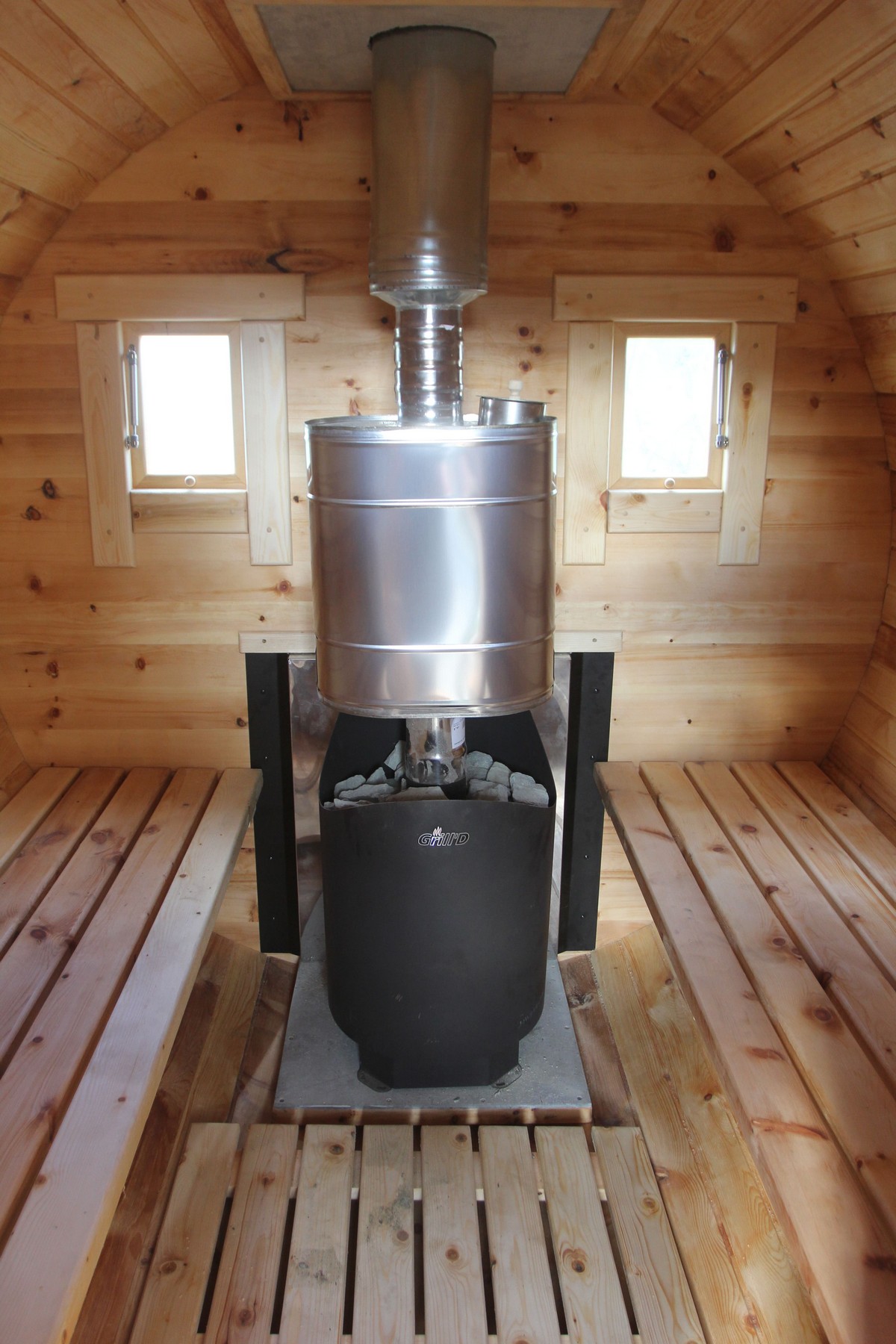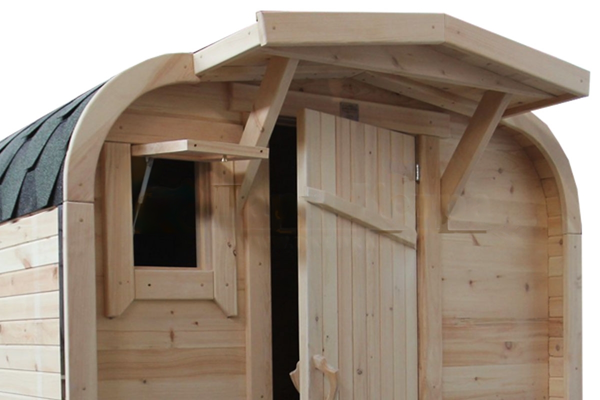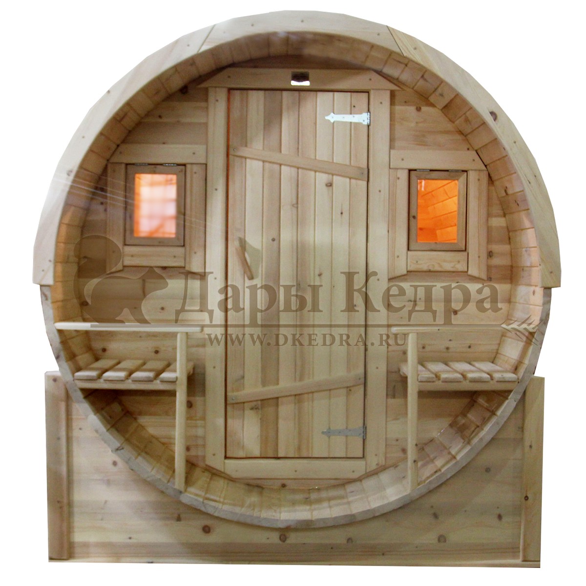 Это прямоугольное изделие с закругленными углами. За счет такой конструкции во время топки воздух циркулирует по кругу, поэтому баня-бочка нагревается не более 30 минут. Баня включает в себя раздевалку и парилку. Лавочки из кедра установлены по всей длине бани-бочки с обеих сторон. Печь расположена в парилке около дальней стены. Для удобства пользования в раздевалке находится вешалка и полочка из кедра. По вашему желанию баню-бочку квадро можно укомплектовать козырьком, верандой и печью с внешней загрузкой, благодаря которой весь мусор после топки остается на улице. Баня-бочка квадро не требует полноценный фундамент, поэтому при необходимости ее можно перенести в другое место.
