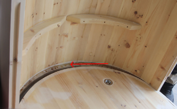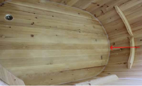 - Внутри купели закрепить на саморезы сиденья (в каждое отверстие), установить внутреннюю лестницу и закрепить на саморезы, все отверстия закрыть пластиковыми заглушками. Изделие собрано и готово будет к эксплуатации только по истечении двух дней! Сразу после склейки купель наполнять водой нельзя!